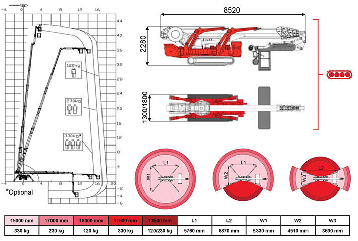 · 有120、230、330公斤載荷的工作區(qū)域,由自動“區(qū)域經(jīng)理”安全系統(tǒng)監(jiān)控。